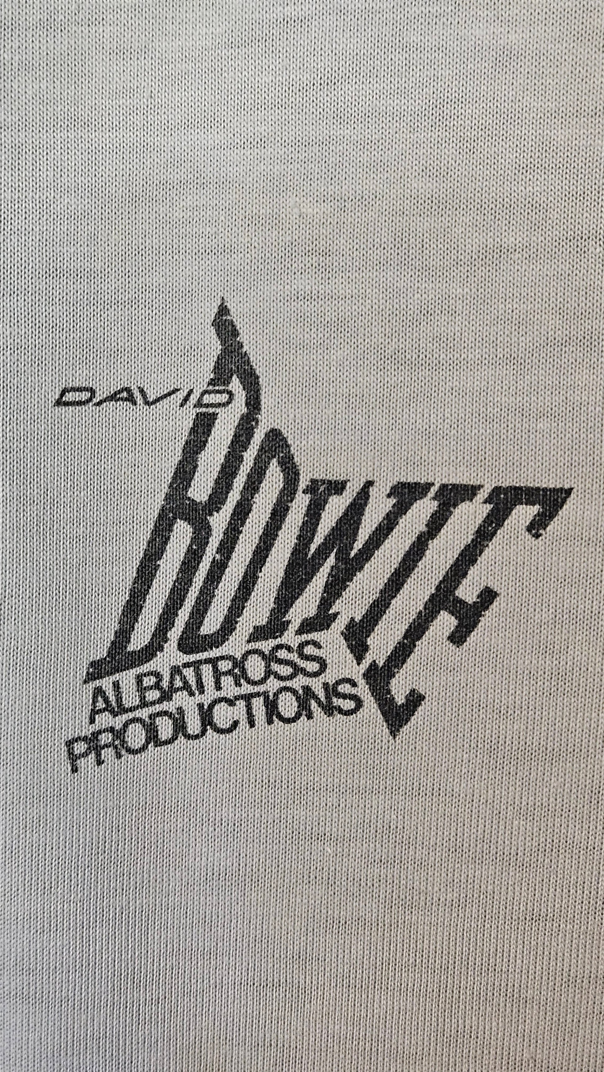 David Bowie Albatross Productions Polo Shirt – Size L (Grey, Used) A rare gem from the Bruce Jones collection – this grey Albatross Productions polo shirt was worn during the David Bowie era. Size Large, measuring 19" wide x 26" long. Features subtle signs of wear and some staining, adding authentic character to this piece of music history. Albatross Productions was known for its close association with Bowie’s tours and creative output—making this a unique collectible for any serious Bowie fan or vintage crew wear enthusiast. Own a piece of the legacy. Condition: Used, with some staining Color: Grey Size: Large (19” pit to pit x 26” length) Provenance: From the personal collection of Bruce Jones (Showco alum)