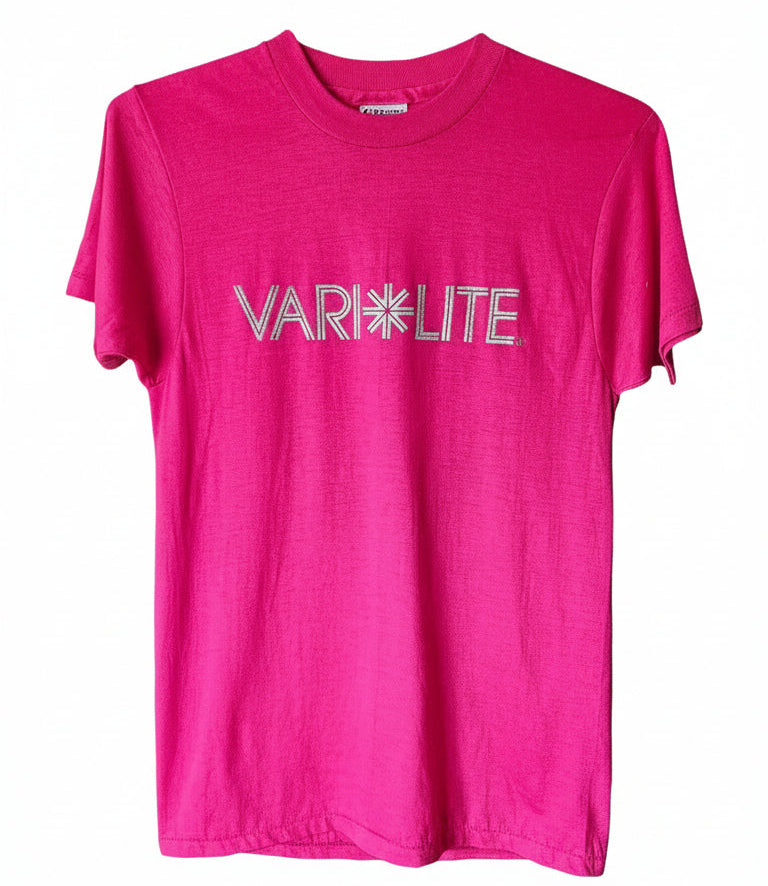 From the personal collection of Showco alum Lewis Lee, this Judas Priest 1986 shirt is fuchsia with metallic silver screen printing and a large VL logo on the front.